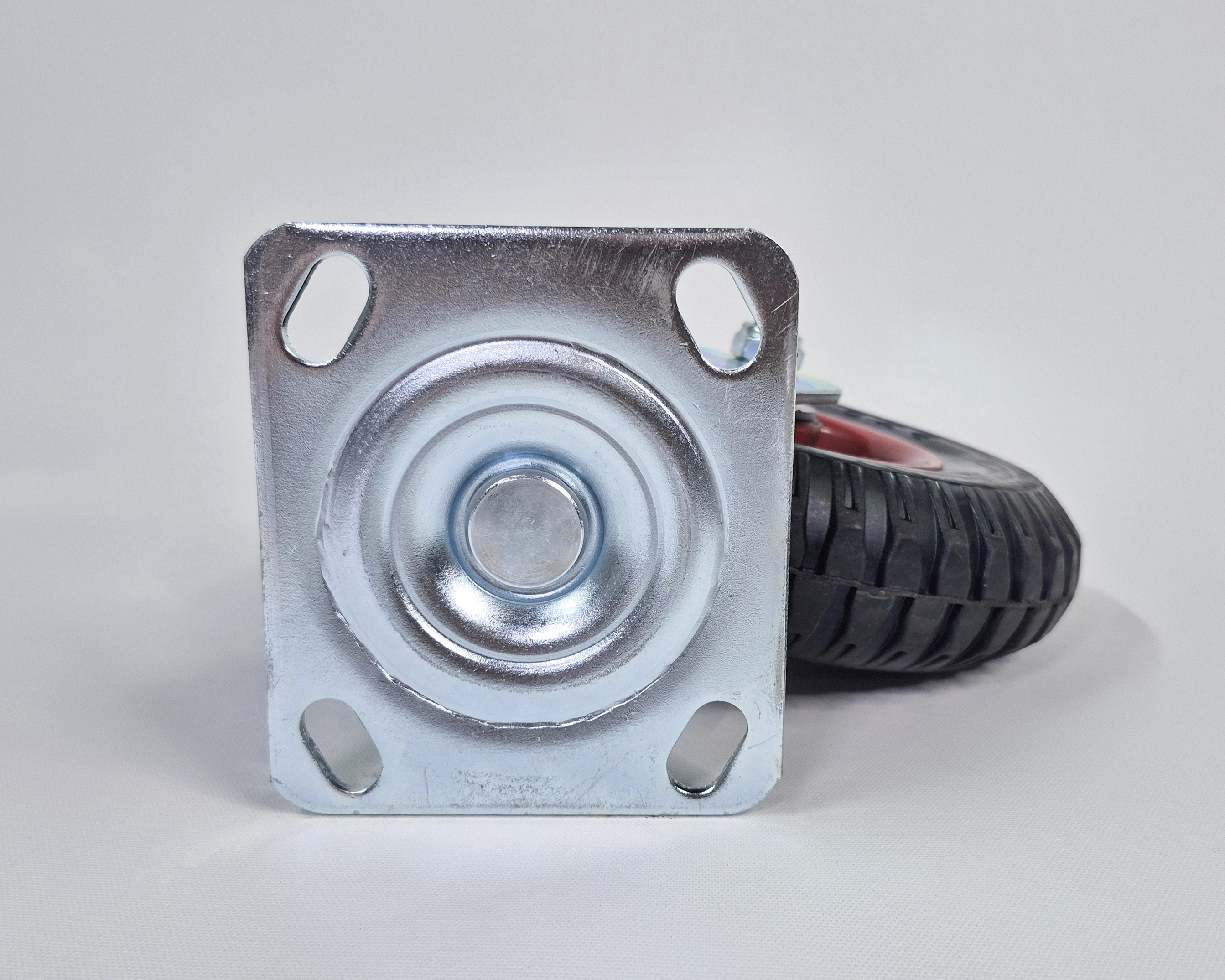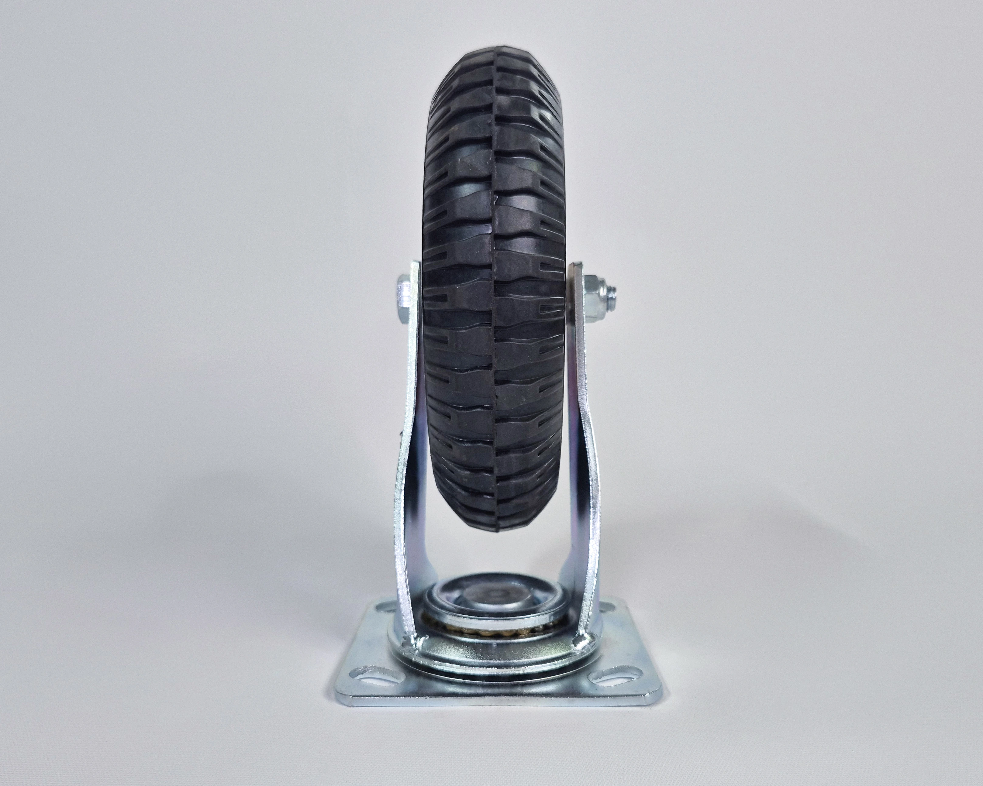 Поворотные литые колеса устанавливаются на габаритные платформенные тележки и другие транспортировочные конструкции. Они подходят для использования на любых основаниях, в том числе под открытым небом. Цельная шина из эластичной и износостойкой резины отличается долговечностью и неприхотливостью, а также обеспечивает хорошую проходимость всей конструкции.